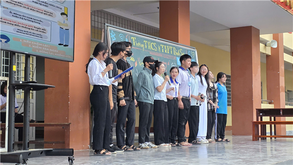 Sau phần kịch, không khí hội trường trở nên hào hứng hơn với phần trả lời câu hỏi trắc nghiệm vui. Các câu hỏi xoay quanh những tình huống thực tế khi sử dụng mạng Internet, như: bảo mật mật khẩu, cách ứng xử trên mạng xã hội, hay xử lý khi gặp thông tin giả mạo. Các em học sinh đã hào hứng giơ tay trả lời, cổ vũ lẫn nhau và cùng nhau củng cố kiến thức về an toàn số một cách nhẹ nhàng, sinh động.